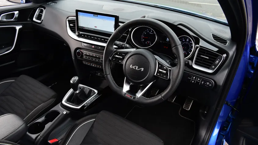 Ceed GT-Line의 실내는 스포티한 디자인과 실용성을 동시에 고려하여 설계되었습니다. D컷 스티어링 휠, 스포츠 시트, 메탈 페달 등이 장착되어 운전의 즐거움을 더합니다. 또한, 8인치 터치스크린 인포테인먼트 시스템과 애플 카플레이 및 안드로이드 오토 호환 기능이 제공되어, 스마트한 연결성을 지원합니다.