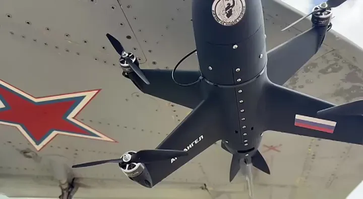 최근 러시아 민간 드론 개발 단체 **‘아크 엔젤 프로젝트’**가 공개한 영상에는 MiG-29SMT 전투기 하부에 요격용 드론이 케이블 타이로 단단히 묶여 있는 장면이 담겼다.