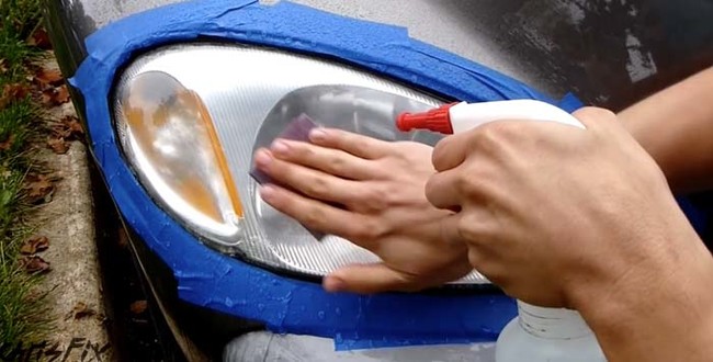 - 헤드라이트 변색이 심한 경우, 사포로 표면을 일정하게 다듬고 복원제를 사용하는 것이 보다 효과적이다.